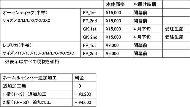 ならびに選手ナンバー加工ユニフォームの受注受付を2021年1月15日(金)より開始いたしますので、下記の通りお知らせします。