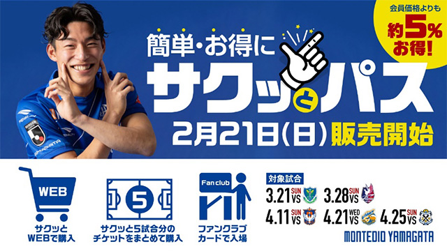 2月21日(日)より、ファンクラブ会員のお客様を対象に3月と4月開催のホームゲーム5試合の観戦チケットをサクッと簡単・お得に購入できる「サクッとパス」の販売を開始します。