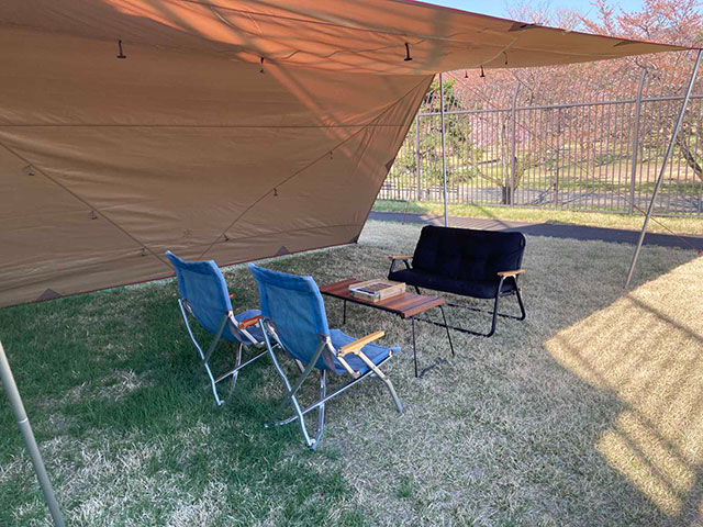 - バックスタンドの中央エリアでキャンプ気分(コールマンのアイテムを使用)