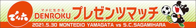 モンテディオ山形では、5月30日に開催するホームゲームSC相模原戦をユニフォームスポンサーの株式会社でん六様による『マメに生きる でん六プレゼンツマッチ』として開催します。来場者プレゼントをはじめとするイベント概要を下記の通りお知らせします。