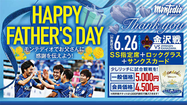 モンテディオ山形では6月26日(土)開催のホームゲーム、金沢戦を対象に「SS指定席」観戦チケットに新発売のロックグラス・サンクスカードをセットにした『父の日ギフトセット』を販売します。