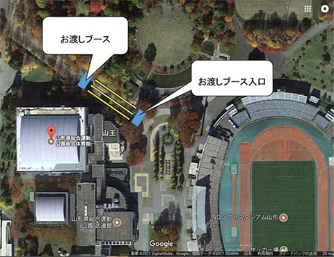 ハーフタイム時に当選者発表を行います。当選者は、試合終了後に天童市ブースへお越しください。