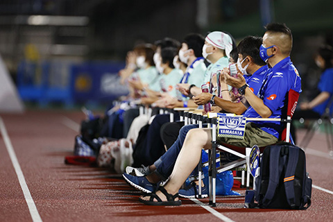 • バックスタンドでご観戦されるお客様の妨げになりますので、試合中立っての応援は禁止です。