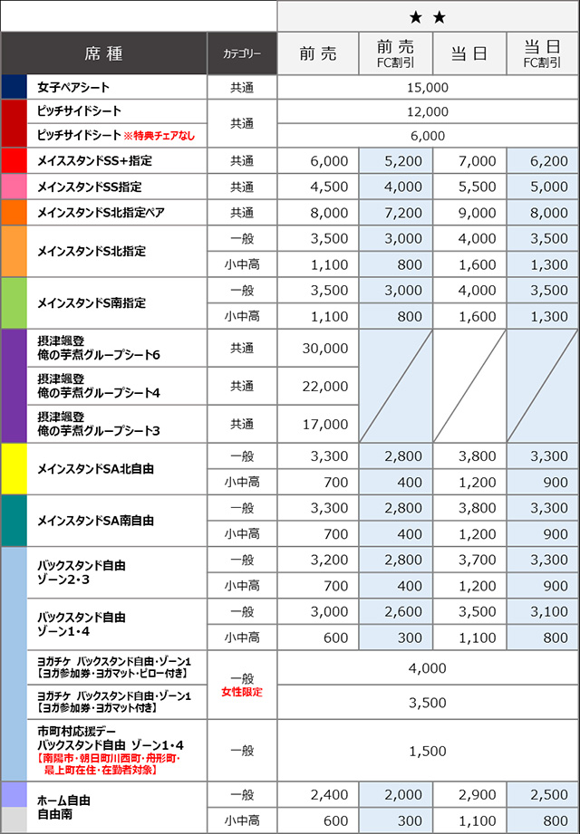 人気席種は早期完売の可能性がありますので、お早めにチケットをお買い求めください。