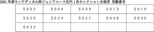 2021年度モンテディオ山形ジュニアユース庄内1次セレクションにご参加いただきありがとうございました。選考結果を以下の通り発表いたします。