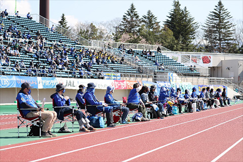 - バックスタンドでご観戦されるお客様の妨げになりますので、試合中立っての応援は禁止です。