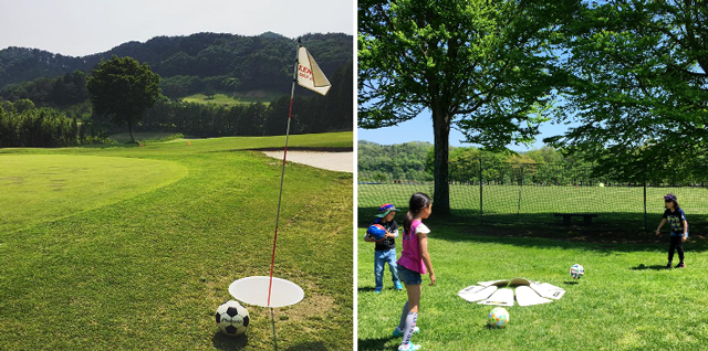 性別や年齢をこえ多くの方が楽しむことができるスポーツ、「フットゴルフ」のミニコースが体験できます。