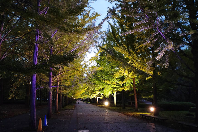 山形県総合運動公園 いちょう並木ライトアップ実施について