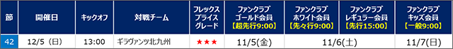 12月5日(日)開催のホームゲーム ギラヴァンツ北九州戦チケット販売スケジュールを下記の通りお知らせします。