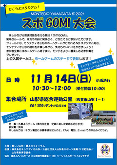 2021年11月14日(日)大宮戦にて、美しい山形・最上川フォーラムが主催する「モンテディオ杯 2021スポGOMI大会」が、NDソフトスタジアム山形(山形県総合運動公園)で行われます。