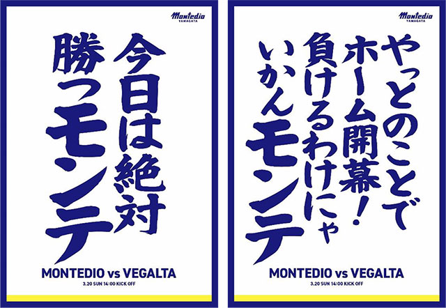 モンテディオ山形は2022シーズンのホーム開幕戦ベガルタ仙台戦(3月20日(日)開催)に向け、勝利への強い願いと7年ぶりのダービーマッチへの 想いを込めた10種類のキャッチコピーを用いたプロモーション展開を行います。