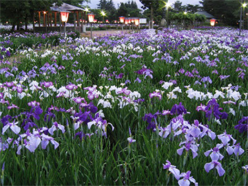 「株式会社アイデアのおもちゃ箱」様より馬肉ラーメン肉まん、蕎麦チップス等の販売、「けん玉広場SPIKe」様よりけん玉の販売、あやめまつりのPR、うちわの配布を行います。