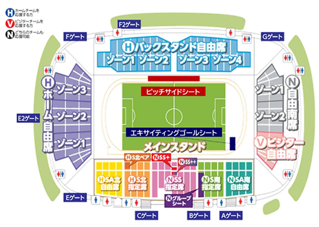 - メインスタンドS北指定席ペア・グループシート、自由南席、ビジター席の販売はありません。