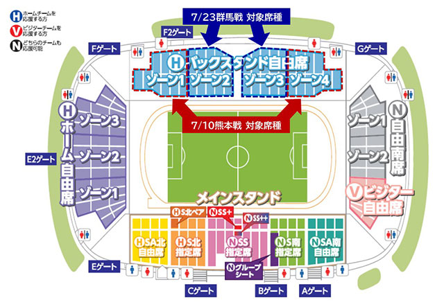 | 7/23(土) | ザスパクサツ群馬 | バックスタンド自由席ゾーン2・3 |