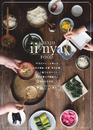 『SHINJO ii-nya FOOD』(新庄いいにゃ風土)は雪国だからこそ残った生活の知恵、手業、保存技術、そして豊作を祈りつつ、食材を残さず調理する新庄の食文化を残し伝えていきたい。新庄市固有の農産物や食文化を物語る農産物加工商品のブランドです。
