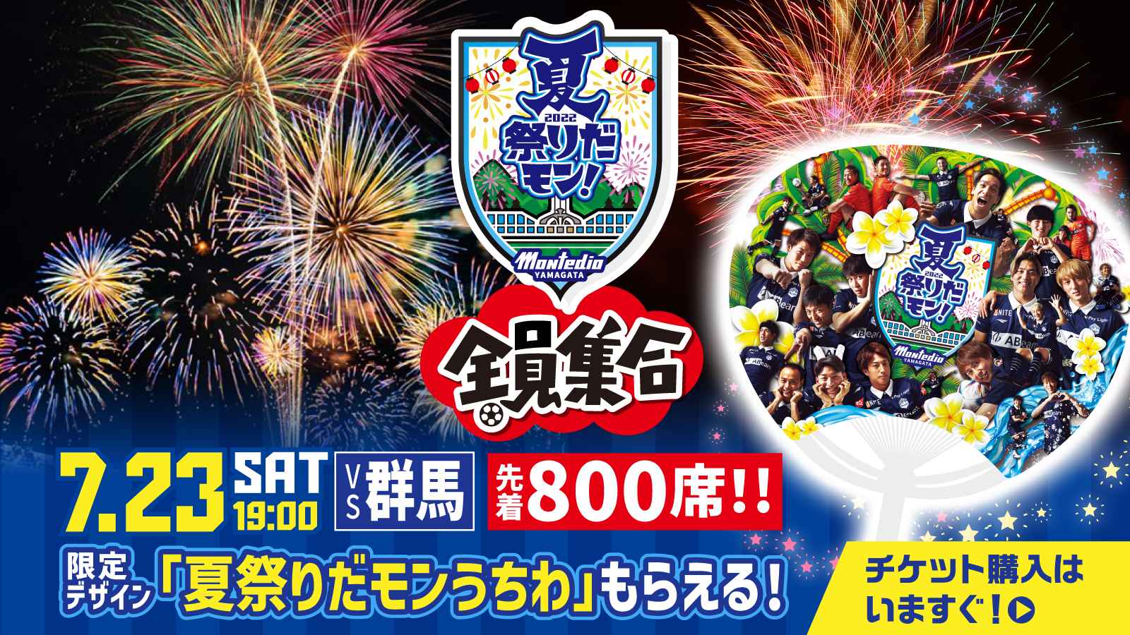 こちらの『夏祭りうちわ』を7月23日のホームゲーム群馬戦のチケットをご購入いただいた先着800名様にプレゼントします。この夏はモンテディオの『夏祭りだモン!』にうちわを持って全員集合!