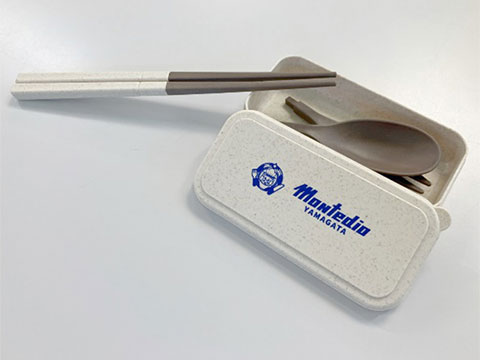 スタンプラリー期間内に、下記「子ども交流応援店舗」で食事や飲食物を購入された天童市内の小学生を対象にスタンプシールをお渡しします。2店舗以上巡り、その後モンテディオ山形のホームゲームにご来場いただいた先着500名様 にオリジナルグッズ「バンブーファイバーカトラリー」をプレゼントします。