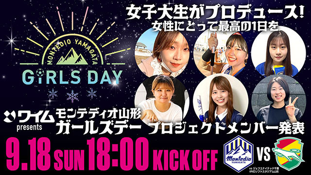 モンテディオ山形では、「ワイムpresents モンテディオ山形 GIRLSDAY」として開催するホームゲーム千葉戦(9月18日(日)開催)に際し、女子大生が本試合のイベント・グッズのプロデュースに携わる「女子大生プロジェクト」を展開しています。