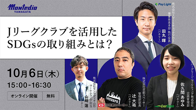 SDGsや社会貢献活動の推進をモンテディオ山形と共に行うパートナー企業様にご登壇いただき、10月6日に無料のオンラインセミナーを開催いたします。