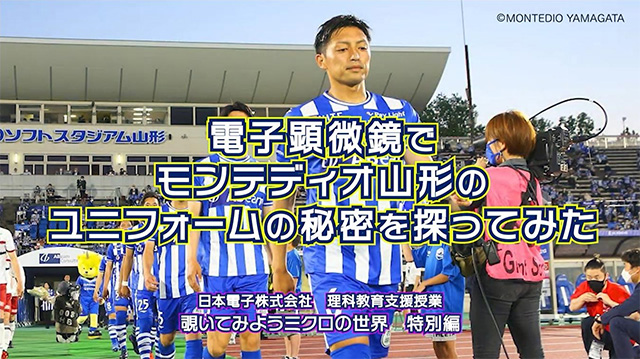 日本電子は肉眼や光学顕微鏡では見ることができないミクロの世界に触れ、子供たちの科学する心が育まれることを願い2007年より、電子顕微鏡を用いた理科教育支援活動を行ってきました。今回、モンテディオ山形とコラボレーション企画として、モンテディオ山形のユニフォームなどの観察ができる電子顕微鏡操作体験を行います。顕微鏡で観察するのは、ユニフォームの他にも、昆虫や花粉、犬の毛、猫の毛、蟻、星の砂、太陽の砂など。ミクロの世界に飛び込んで、新しい発見を体感しよう!