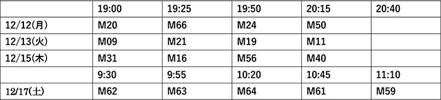 ※ご都合が悪い際は12/6(火)までにご相談ください。