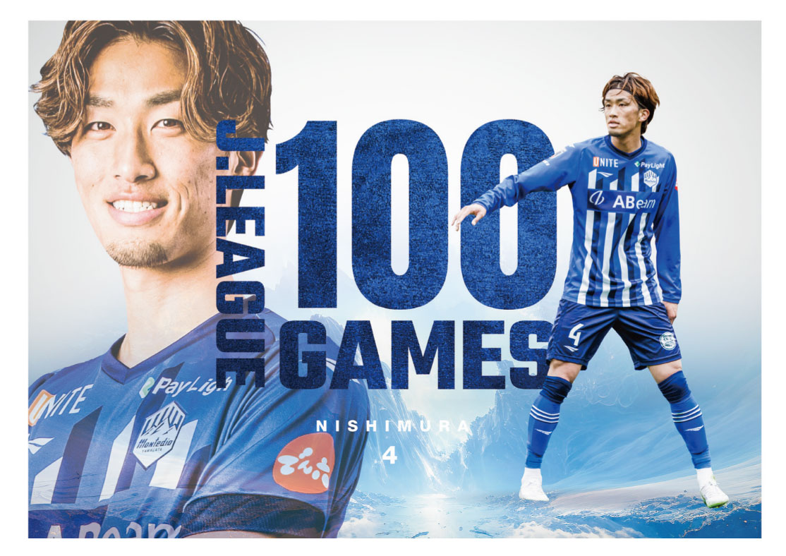 西村 慧祐選手が2023年3月25日長崎戦でJリーグ通算100試合出場を達成しました。