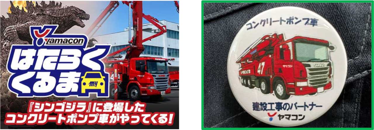 映画『シン・ゴジラ』にも出た、yamaconのウルトラロングブームコンクリートポンプ車も登場!ヤマコンブース来場先着150名様に限定缶バッジもプレゼント!