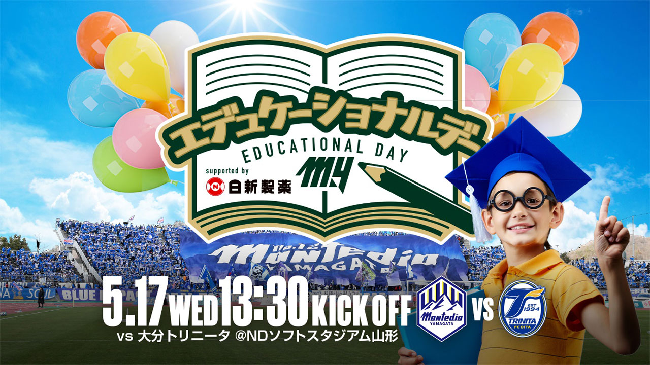 モンテディオ山形では、2023年5月17日(水)に開催するホームゲーム大分トリニータ戦において、『エデュケーショナルデー』開催に伴いバックスタンド自由席の一部占有エリアの設置をいたします。