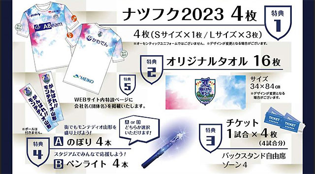 モンテディオ山形では、7月9日から8月19日に開催される4試合を『夏祭りだモン!2023』として、夏にちなんだイベントを数多く展開いたします。この『夏祭りだモン!2023』に合わせて、法人・団体向けチケット・グッズパッケージ『夏祭りだモン!2023スペシャル企画』を展開いたします。