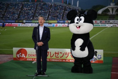 モンテディオ山形の勝利を願い、活躍した選手には「でん六MVP」が贈呈されます。