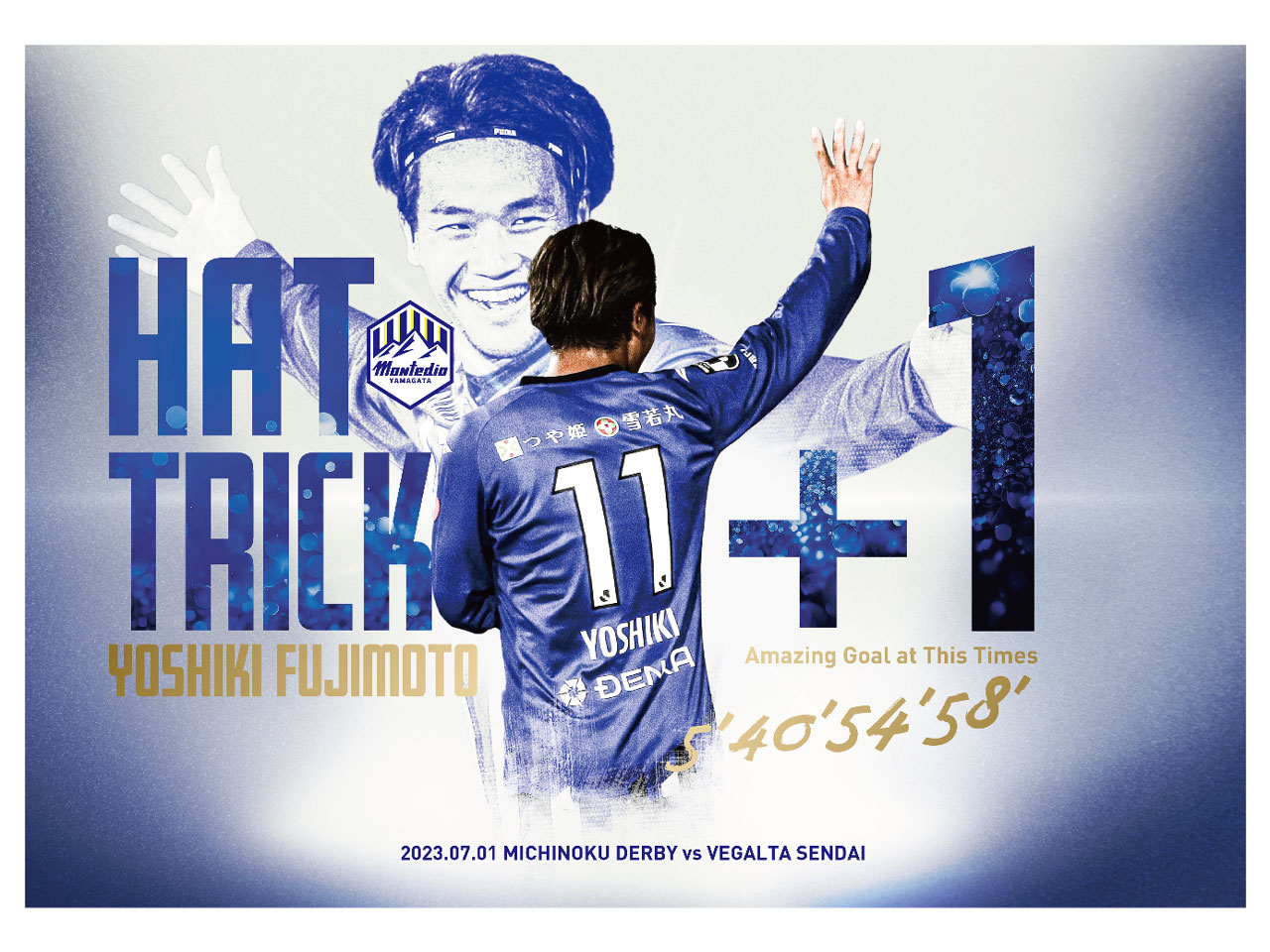 2023年7月1日(土)に行われた2023明治安田生命J2リーグ第23節ベガルタ仙台戦において、藤本佳希選手がモンテディオ山形では史上2人目となる一試合で4得点を記録しました。