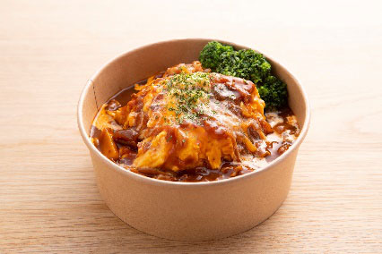 メニュー紹介:オムライスにハヤシソースをかけた一品です。