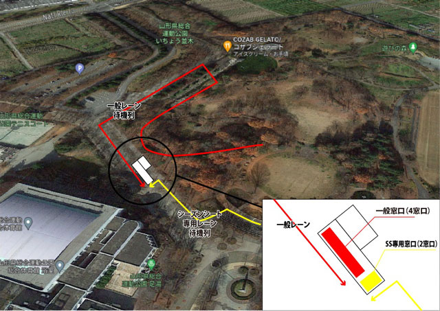 - 個人シーズンシート会員の方は会員証を必ずお持ちください。シーズンシート専用レーンにて引換えを行います。