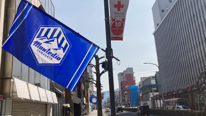2024年3月15日(金)に山形駅前大通り商店街でモンテディオ山形応援フラッグ掲出活動を実施いたしますのでお知らせいたします。