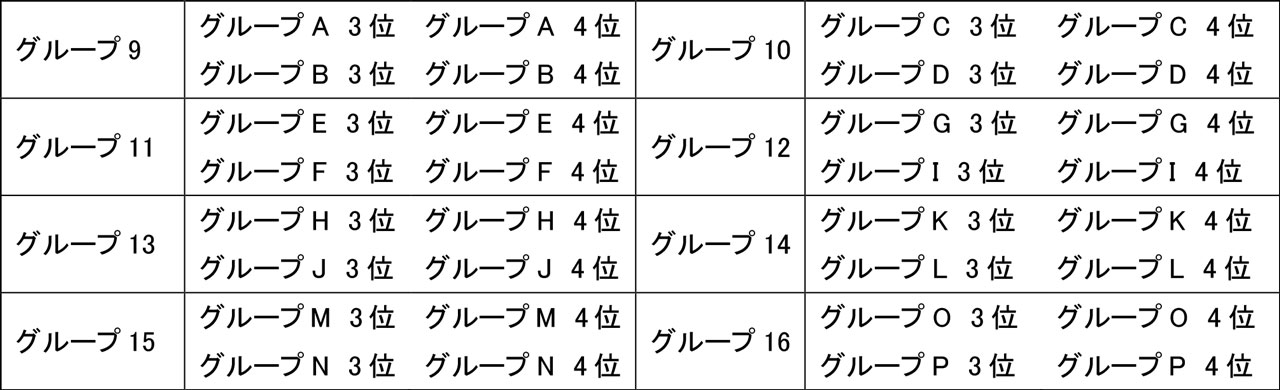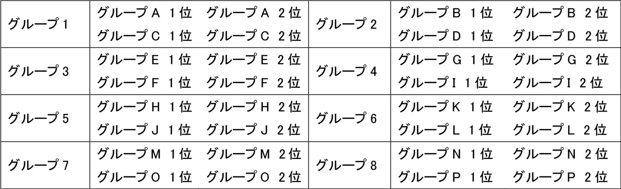 ※ノックアウトラウンドの組み合わせは、2ndラウンド終了後に抽選で決定する。