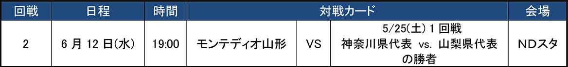 公開日 2024.03.19 天皇杯 JFA 第104回全日本サッカー選手権大会 1・2回戦キックオフ時間決定のお知らせ 「天皇杯JFA第104回天皇杯全日本サッカー選手権大会」の1・2回戦のキックオフ時間が決定いたしましたので下記の通りお知らせいたします。先日ご案内の通り、モンテディオ山形は2回戦からの出場となります。 第104回天皇杯JFA全日本サッカー選手権大会2回戦 組み合わせ ※チケット販売については後日発表予定です。 ■天皇杯 JFA 第104回全日本サッカー選手権大会 ホームページ #チーム ニュース一覧