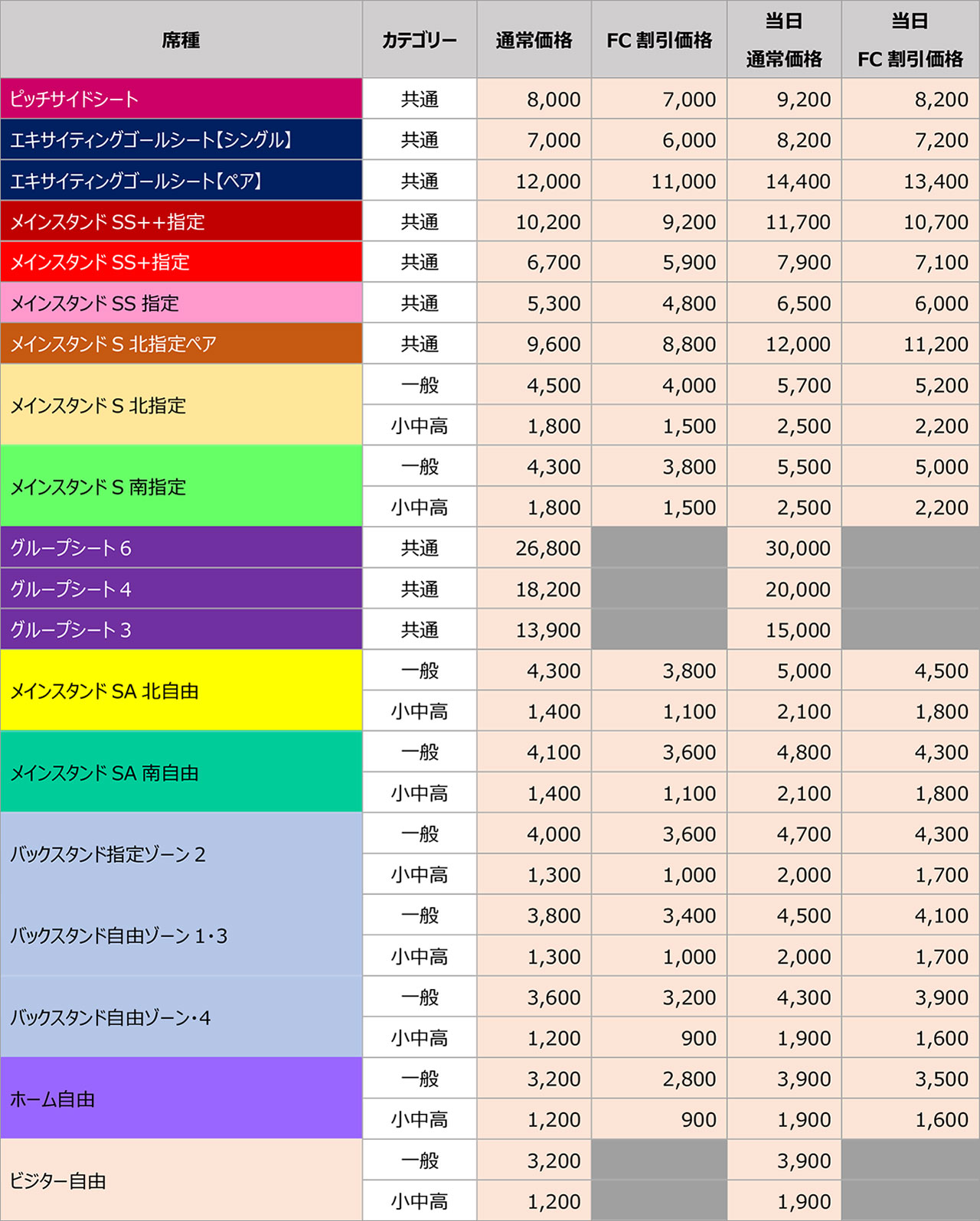 ※シーズンシートをお持ちのお客様、他の席でチケットを購入のお客様はこちらをご購入ください。