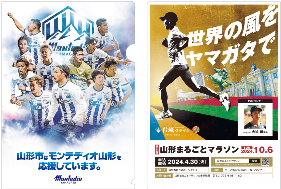 山形まるごとマラソン×モンテディオ山形オリジナルクリアファイルを配布いたします。