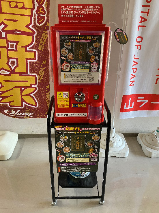 ラーメン店の特典付きキーホルダーが当たるガチャガチャ