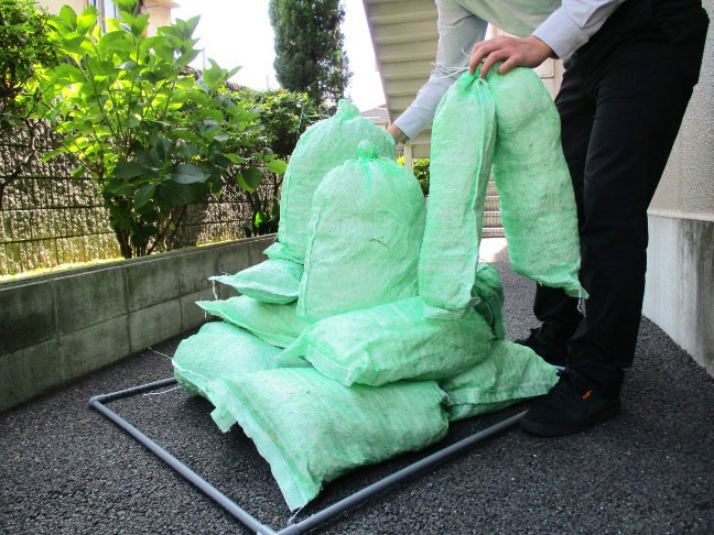 グリーンバッグ(植生土のう袋)を1m枠内に高く積もう!
