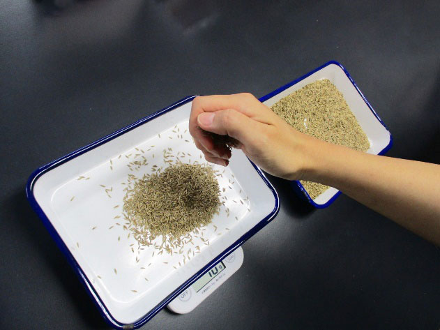 植物の種を10g目指してつかみ取り!