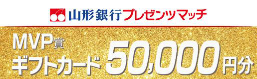 また、モンテディオ山形が勝利した場合、活躍したヒーロー選手へMVP賞として、ギフトカード5万円相当が贈られます。