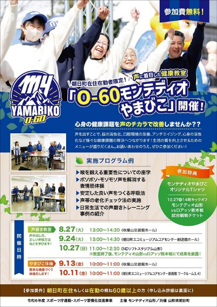 モンテディオ山形では、朝日町との共同で、声のチカラに着目した健康教室を開催します。
