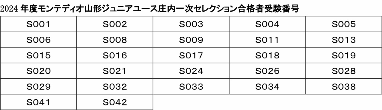 この度はモンテディオ山形ジュニアユース庄内二次セレクションにご参加いただきありがとうございました。選考結果を以下の通り発表いたします。