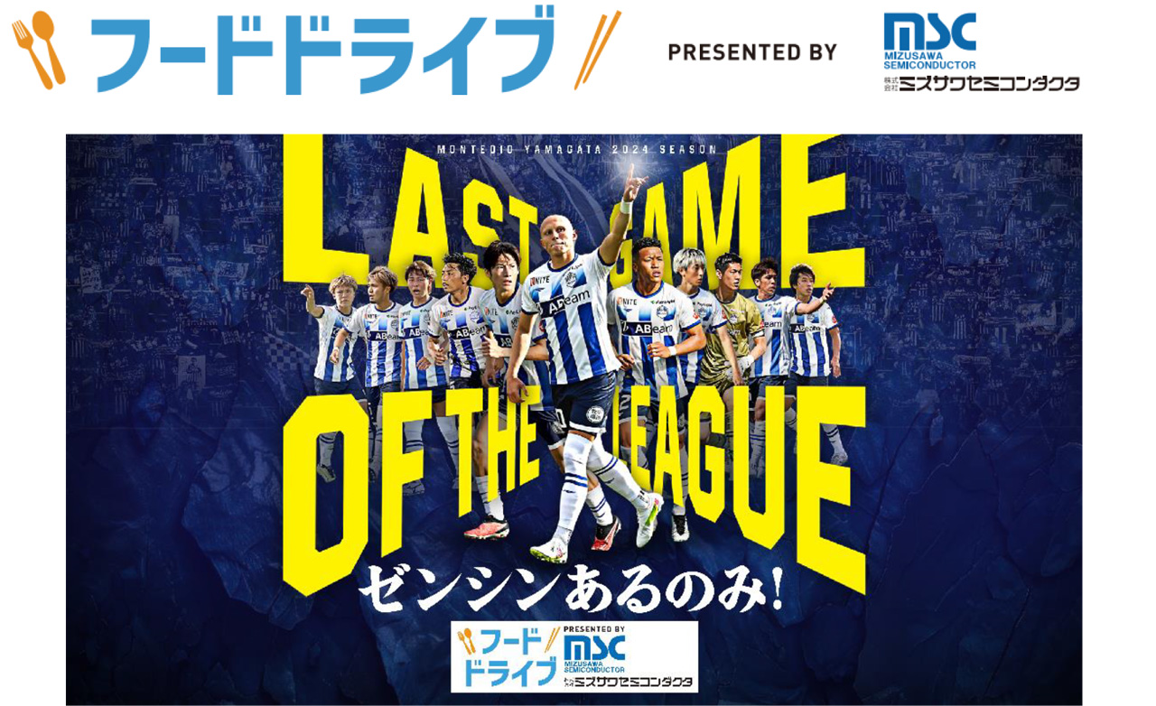 モンテディオ山形では、2024年11月10日(日)に開催するホームゲーム ジェフユナイテッド千葉戦の試合会場にて「フードドライブ presented byミズサワセミコンダクタ」を実施いたしますのでお知らせいたします。
