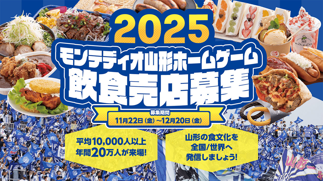 モンテディオ山形では、2025シーズンのモンテディオ山形ホームゲーム飲食売店(場外)『ブルーキッチン』の出店店舗を、下記の通り募集いたします。