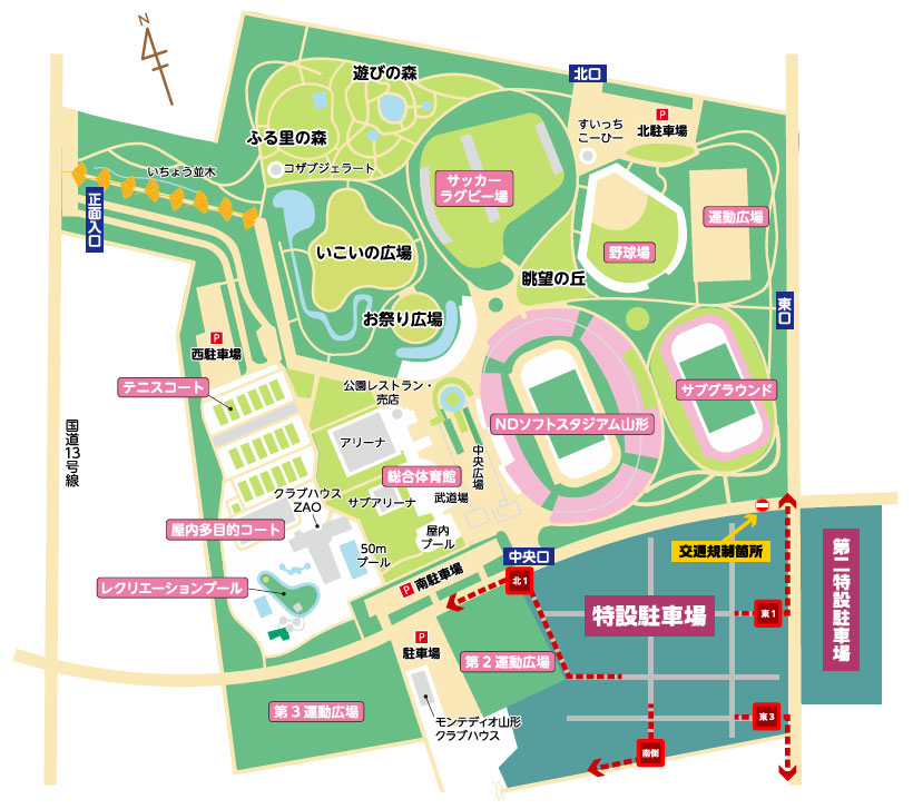 - 山形県総合運動公園内に設置されている北駐車場・南駐車場・西駐車場はご利用になることが出来ません。