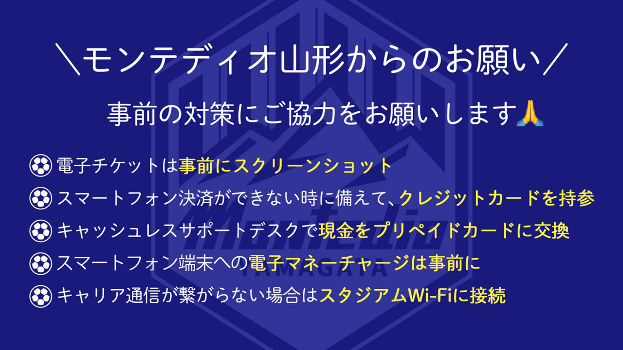多数のお客様のご来場に伴い、スタジアム内のネット環境が不安定になる可能性がございます。