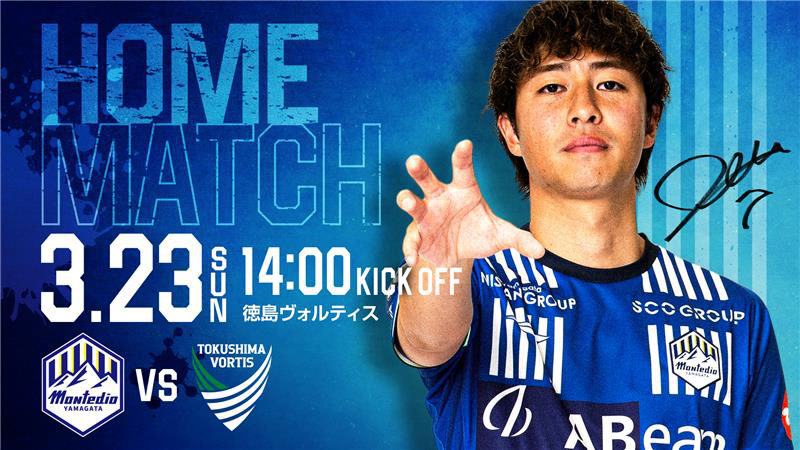 - 3月23日(日)モンテディオ山形 vs 徳島ヴォルティス(14:00キックオフ/NDソフトスタジアム山形)