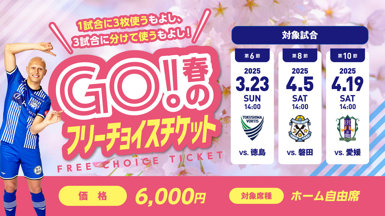 1試合に3枚使うことも、3試合に分けて使うことも可能な「GO!春のフリーチョイスチケット」を販売いたします!